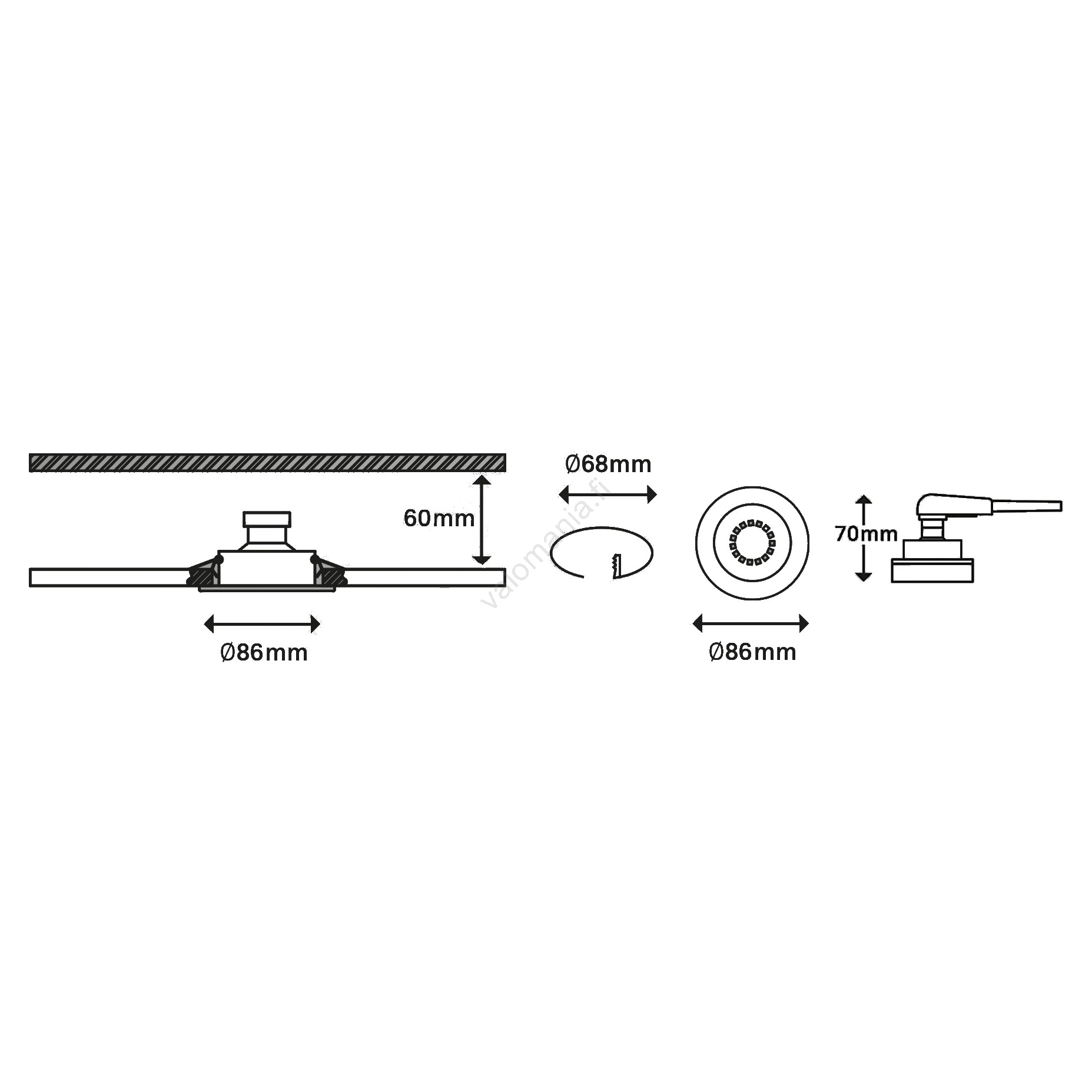| Asennusreikä | 68 mm |