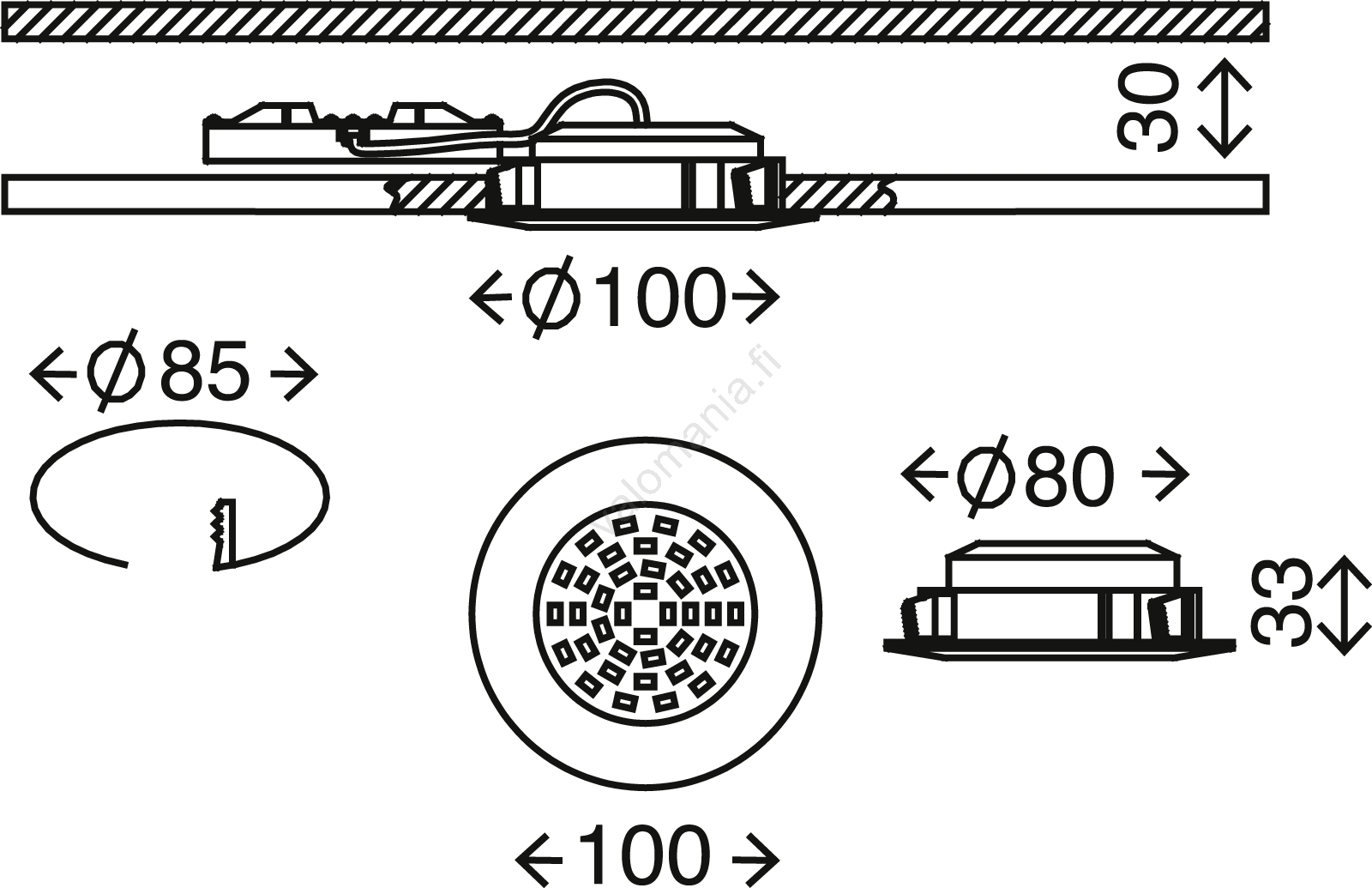 | Asennusreikä | 85 mm |