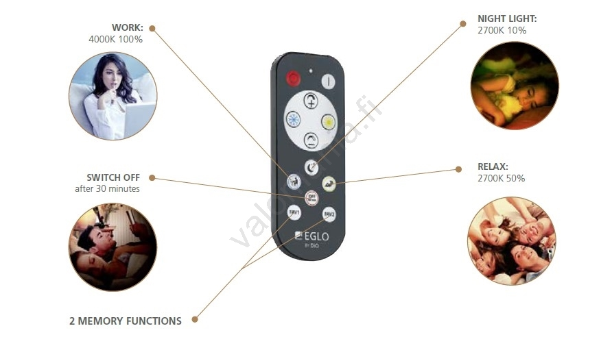 | Toiminto | LED-tekniikka; Kaukosäädin |
