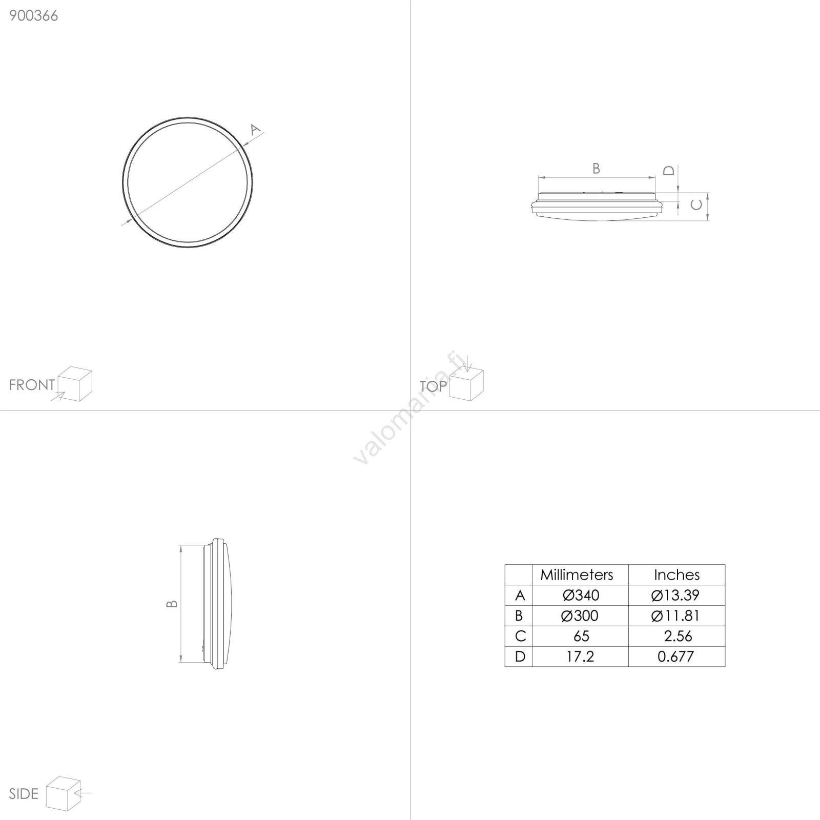 | Halkaisija | 340 mm |