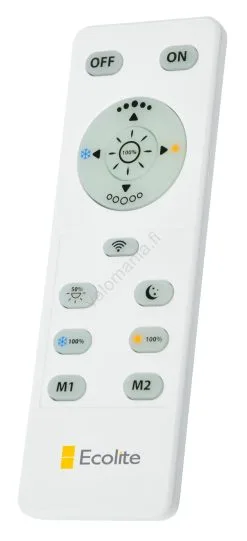 - Mukana tulee kaukosäädin, jolla voit säätää valon väriä ja kirkkautta ja muita toimintoja, kuten yövalaistusta tai muistiin tallentamista.