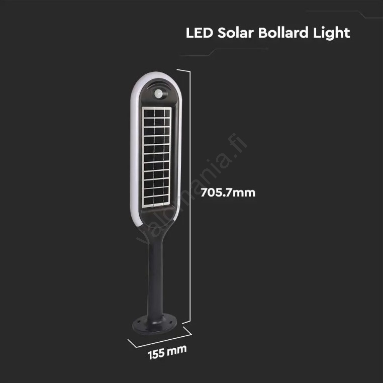 - LED-aurinkolamppu liike- ja hämärätunnistimella.