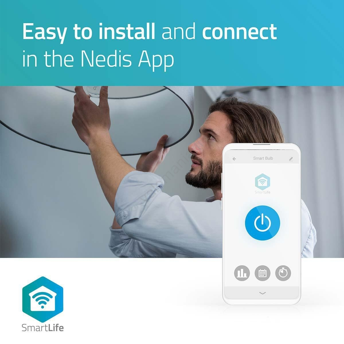 - Voit säätää lampun lämpötilaa ja kirkkautta Nedis SmartLife -sovelluksella (yhteensopiva iOS:n ja Androidin kanssa).