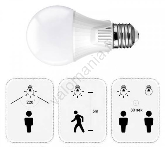 - LED-lamppu sisäänrakennetulla mikroaalto liiketunnistimella.