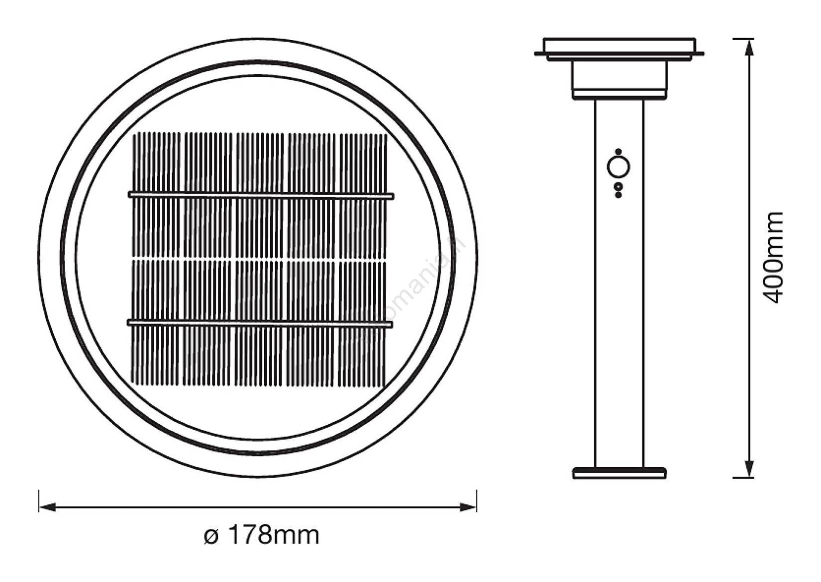 | Toiminto | LED-tekniikka; Himmennettävä, himmentimellä; Paristokäyttöinen, mukana; Aurinkoteknologia; Anturilla |