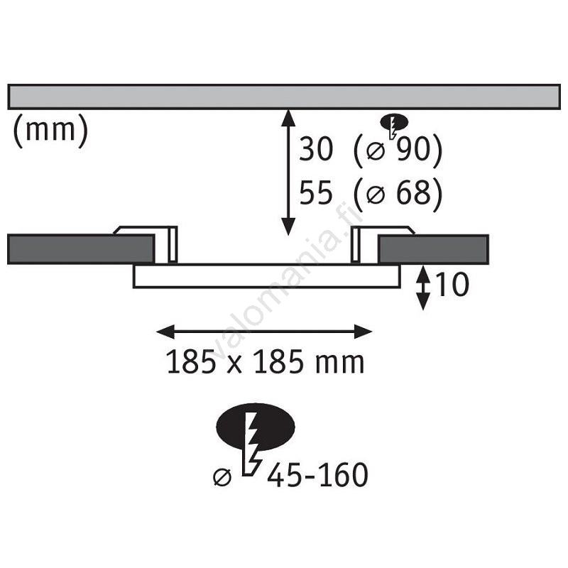 | Asennusreikä | 160 mm |