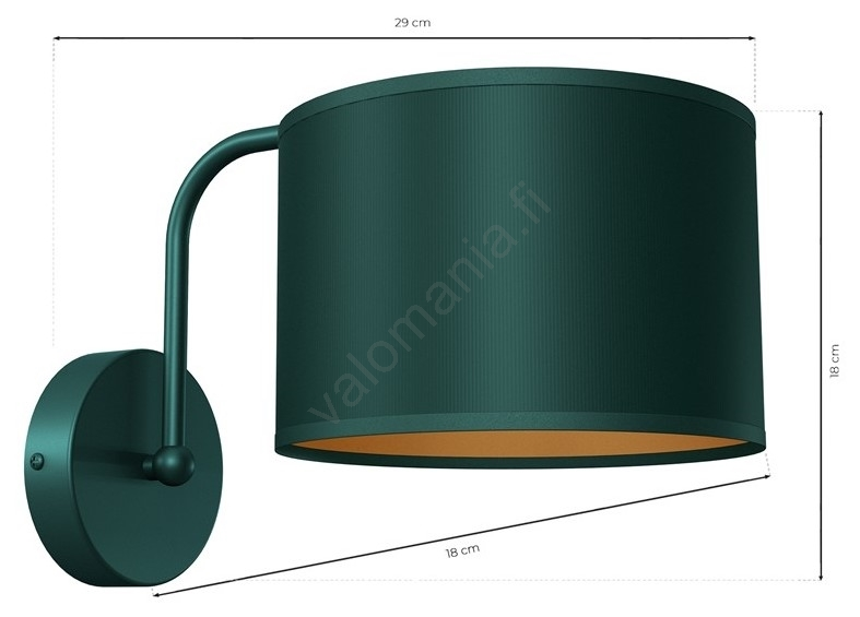 seinävalaisin VERDE 1xE27/60W/230V vihreä tulee kauniilla ja toimivalla muotoilulla. Se vaatii lampun, jolla on seuraavat parametrit E27. Täällä voit ostaa sen edulliseen hintaan. Valo on Vihreä-muotoiltu. Mielenkiintoinen lisäys kotiisi.