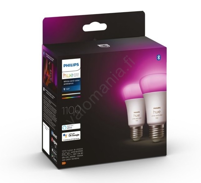 - Kahden polttimon LED White and Color Ambiance -sarja, himmennettävä E27.