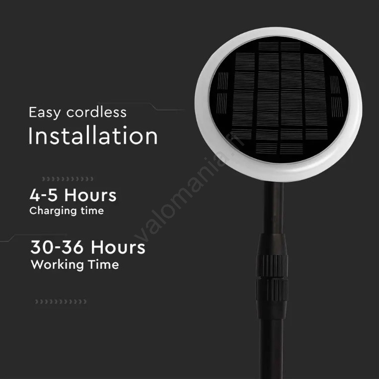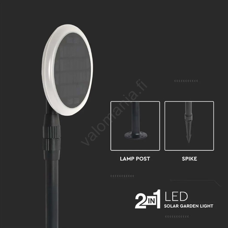 | Toiminto | LED-tekniikka; Aurinkoteknologia; Katkaisin sijaisee valaisimen rungossa |